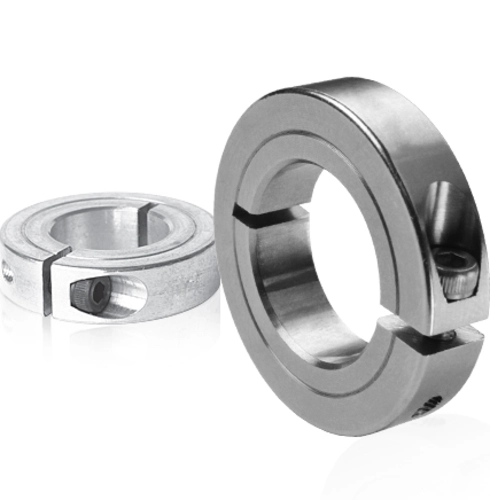 Klemmringe dienen zur axialen Sicherung von Komponenten auf Wellen oder als axialer Anschlag. Um hierbei eine optimale Performance zu bieten, zeichnet sich unser Klemmring Clampmax durch spezielle Features aus. So werden bei der Herstellung des Klemmrings besondere Verfahren verwendet, um den Nutzen für den Anwender zu optimieren. Es ist z.B. die Bohrung des Clampmax plangedreht, damit sie exakt im rechtwinkligen Verhältnis zur Stirnseite des Klemmrings liegt. Das ist ausschlaggebend bei der Verwendung von Klemmringen als Lagerflächen, als mechanischer Anschlag oder zur Montage anderer Bauteile. Im Zusammenspiel mit hochwertigen Schrauben EN ISO 4762/DIN 912 12.9 (bei Aluminiumausführungen) oder rostfreier Stahl 18-8, rostfreier Stahl AISI 316 (bei Edelstahlausführungen) bietet der Clampmax entscheidende und praxisrelevante Leistungsmerkmale.